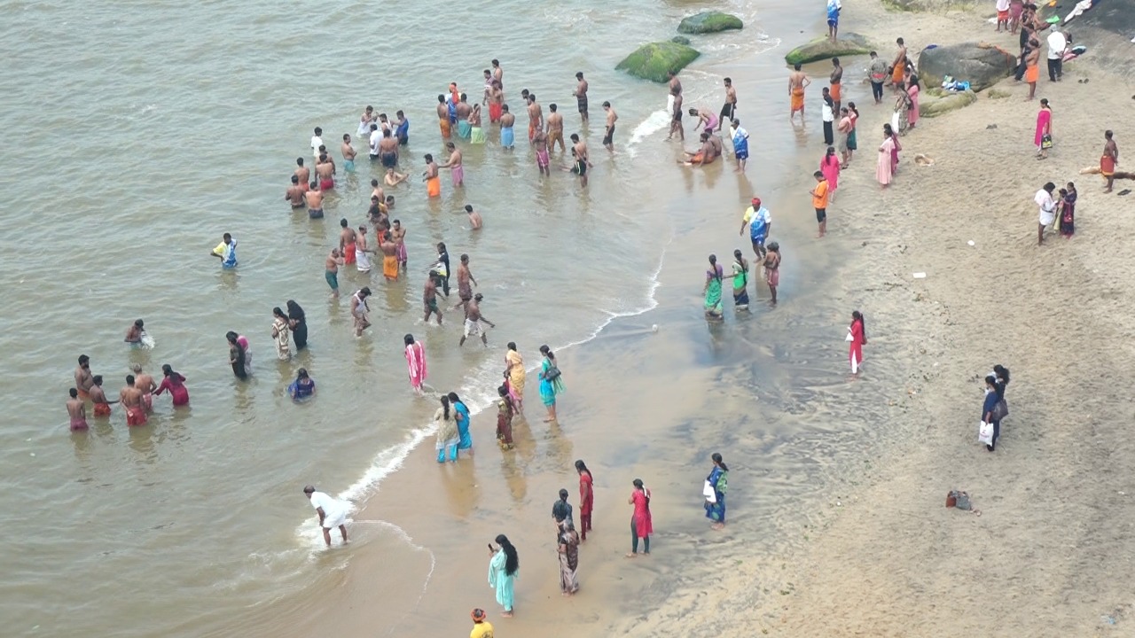 ಸೋಮೇಶ್ವರ ಸಮುದ್ರತೀರದಲ್ಲಿ ಶ್ರಾವಣ ಅಮವಾಸ್ಯೆ ಪ್ರಯುಕ್ತ ತೀರ್ಥಸ್ನಾನದಲ್ಲಿ ಭಕ್ತಾಧಿಗಳು
