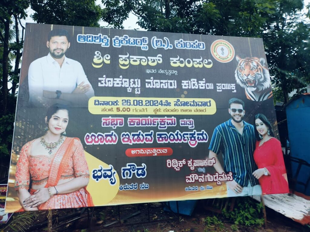 ಸೋಮವಾರ ಕುಂಪಲಾಷ್ಟಮಿ ಸಂಭ್ರಮ. ಪ್ರತೀ ವರ್ಷದಂತೆ ಈ ಬಾರಿಯೂ ಬಾಲಕೃಷ್ಣ ಮಂದಿರದ ಕುಂಪಲಾಷ್ಟಮಿ ಮೊಸರು ಕುಡಿಕೆ ಸಂಭ್ರಮಕ್ಕೆ ಇಡೀ ಕುಂಪಲವೇ ನವವಧುವಿನಂತೆ ಶೃಂಗಾರಗೊಂಡಿದೆ. ಒಂದು ಗ್ರಾಮದ ಉತ್ಸವ ಅಂದ ಮೇಲೆ ಅಲ್ಲೆಲ್ಲಾ ಒಂದಷ್ಟು ಶುಭಾಶಯದ ಬ್ಯಾನರ್ ಗಳು ರಾರಾಜಿಸೋದು ಸಹಜ. ಅದೇ ರೀತಿ ಕುಂಪಲಾಷ್ಟಮಿ ಬ್ಯಾನರ್ ಗಳು ಇಡೀ ಗ್ರಾಮದಲ್ಲಿ ರಾರಾಜಿಸ್ತಿವೆ. ಆದರೆ ಇದರ ಮಧ್ಯೆ ತೊಕ್ಕೊಟ್ಟು ಮೊಸರು ಕುಡಿಕೆ ಉತ್ಸವೆ ಹೆಸರಿನಲ್ಲಿ ಎದ್ದುನಿಂತಿರೋ ಬ್ಯಾನರ್ ಗಳು ಹಲವರ ಅಚ್ಚರಿಕೆ ಕಾರಣವಾಗಿತ್ತು. ಅಸಲಿಗೆ ಈ ಬ್ಯಾನರ್ ನಲ್ಲಿ ಉಲ್ಲೇಖಿಸಿರೋ ಕಾರ್ಯಕ್ರಮದ ಬಗ್ಗೆಯೇ ಹಲವರಿಗೆ ಅಚ್ಚರಿಯಾಗಿತ್ತು. ಸೋಮವಾರ ಕುಂಪಲಾಷ್ಟಮಿ ಪ್ರಯುಕ್ತ ಸಂಜೆ ಇಡೀ ಗ್ರಾಮದಲ್ಲಿ ಮೊಸರು ಕುಡಿಕೆ ಸಂಭ್ರಮ ನಡೆದ್ರೆ ಅದೇ ಕುಂಪಲ ಶಾಲೆಯ ಮೈದಾನದಲ್ಲಿ ತೊಕ್ಕೊಟ್ಟು ಮೊಸರು ಕುಡಿಕೆ ಉತ್ಸವದ ಪ್ರಯುಕ್ತ ಪ್ರತ್ಯೇಕ ಕಾರ್ಯಕ್ರಮವೊಂದನ್ನ ಆಯೋಜಿಸಲಾಗಿತ್ತು. ಅತ್ತ ಕುಂಪಲಾಷ್ಟಮಿಯ ಸಂಭ್ರಮದ ಶೋಭಾಯಾತ್ರೆ ನಡುವೆಯೇ ತೊಕ್ಕೊಟ್ಟು ಮೊಸರುಕುಡಿಕೆ ಉತ್ಸವದ ಪ್ರಯುಕ್ತ ಹುಲಿವೇಷ ಸ್ತಬ್ಥಚಿತ್ರಕ್ಕಾಗಿ ತಾರಾ ಮೆರುಗಿನ ಊದು ಇಡುವ ಕಾರ್ಯಕ್ರಮ ಕುಂಪಲದ ಶಾಲಾ ಮೈದಾನದಲ್ಲೇ ನಡೆಯಲು ಸಿದ್ದತೆ ನಡೆದಿತ್ತು. ಇಡೀ ಕುಂಪಲವೇ ಕುಂಪಲಾಷ್ಟಮಿ ಮೊಸರು ಕುಡಿಕೆ ಸಂಭ್ರಮಿಸೋ ಹೊತ್ತಲ್ಲಿ ತೊಕ್ಕೊಟ್ಟು ಮೊಸರು ಕುಡಿಕೆ ಪ್ರಯುಕ್ತ ಇಂಥದ್ದೊಂದು ಕಾರ್ಯಕ್ರಮವನ್ನ ಕುಂಪಲದಲ್ಲೇ ಆಯೋಜಿಸೋ ಅನಿವಾರ್ಯತೆ ಏನಿತ್ತು ಅಂತ ಜನ ಮಾತನಾಡಿಕೊಳ್ಳುವಂತಾಗಿತ್ತು. ಬೆಂಗಳೂರಿನ ಉದ್ಯಮಿ ಪ್ರಕಾಶ್ ಕುಂಪಲ ನೇತೃತ್ವದಲ್ಲಿ ತೊಕ್ಕೊಟ್ಟು ಮೊಸರು ಕುಡಿಕೆ ಉತ್ಸವದ ಪ್ರಯುಕ್ತ ನಡೆಯೋ ಸಭಾ ಕಾರ್ಯಕ್ರಮ ಹಾಗೂ ಹುಲಿವೇಷ ಸ್ತಬ್ಧ ಚಿತ್ರಕ್ಕಾಗಿ ಊದು ಇಡೋ ಕಾರ್ಯಕ್ರಮ ಇದಾಗಿದೆ. ಅಸಲಿಗೆ ಈ ಕಾರ್ಯಕ್ರಮದಲ್ಲಿ ಕಿರುತೆರೆ ನಟಿಯರಾದ ಭವ್ಯಗೌಡ, ಮೌನ ಗುಡ್ಡೆಮನೆ, ನಟ ರಿಥ್ವಿಕ್ ಕೃಪಾಕರ್ ಭಾಗಿಯಾಗಲಿದ್ದಾರೆ. ಆದರೆ ಊರ ಹಬ್ಬದ ಮಧ್ಯೆ ಮತ್ತೊಂದು ಪ್ರತ್ಯೇಕ ಕಾರ್ಯಕ್ರಮ ಚರ್ಚೆ ಹುಟ್ಟು ಹಾಕಿದ ಬೆನ್ನಲ್ಲೇ ಇದೀಗ ಜಾಗ ಬದಲಾಗಿದೆ.