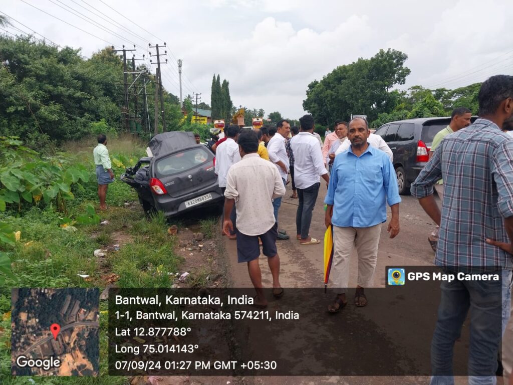 ಪೆರ್ನೆ ಸಮೀಪದ ಒಡ್ಯದಗಯ ನಿವಾಸಿ ಅನಿಶ್ ಕೃಷ್ಣ ಹಾಗೂ ಪತ್ನಿ ಬಿ.ಸಿ.ರೋಡ್ ಕಡೆಯಿಂದ ಮಂಗಳೂರು ಕಡೆಗೆ ಪ್ರಯಾಣಿಸುತ್ತಿದ್ದ ವೇಳೆ ಆಲ್ಟೋ ಕಾರು ನಿಯಂತ್ರಣ ಕಳೆದುಕೊಂಡು ಡಿವೈಡರ್ ಹಾರಿ ಕೆ.ಎಸ್.ಆರ್ಟಿ.ಸಿ ಬಸ್ ಗೆ ಡಿಕ್ಕಿಹೊಡೆದಿದೆ.