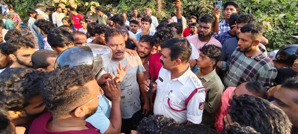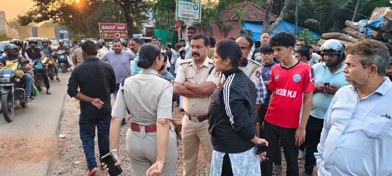 ಘಟನೆ ನಡೆಯುತ್ತಿದ್ದಂತೆ ಆಂಬ್ಯುಲೆನ್ಸ್ ಬಾರದ ಹಿನ್ನೆಲೆಯಲ್ಲಿ ಉದ್ರಿಕ್ತ ಗುಂಪು ಸ್ಥಳದಲ್ಲಿ ಜಮಾಯಿಸಿತ್ತು. ಈ ವೇಳೆ ರಸ್ತೆ ಹೊಂಡಗಳಿAದ ಅಪಘಾತ ನಡೆದಿರುವುದನ್ನು ಖಚಿತಪಡಿಸಿಕೊಂಡ ಗುಂಪು ರಸ್ತೆಗೆ ಅಡ್ಡವಾಗಿ ಕಲ್ಲುಗಳನ್ನು ಇಟ್ಟು ತೊಕ್ಕೊಟ್ಟು-ಕೊಣಾಜೆ ರಸ್ತೆಯನ್ನು ಬಂದ್ ಮಾಡಿ ಪ್ರತಿಭಟಿಸಿದರು. ಇದರಿಂದ ಗಂಟೆಗಳ ಕಾಲ ವಾಹನಗಳು ಸರತಿ ಸಾಲಿನಲ್ಲಿ ನಿಂತಿದ್ದವು. ಉಳ್ಳಾಲ ಠಾಣೆಯ ಠಾಣಾಧಿಕಾರಿ ಹೆಚ್.ಎನ್.ಬಾಲಕೃಷ್ಣ ಮತ್ತು ಸಿಬ್ಬಂದಿ ಧರ್ಮ ಅವರು ಸ್ಥಳಕ್ಕಾಗಮಿಸುತ್ತಿದ್ದಂತೆ ಉದ್ರಿಕ್ತ ಗುಂಪು ಪೊಲೀಸರ ಮೇಲೆಯೇ ಮುಗಿಬಿದ್ದಿದ್ದಾರೆ. ಠಾಣಾಧಿಕಾರಿಗಳು ಕಲ್ಲುಗಳನ್ನು ತೆಗೆಯುವಂತೆ ಕೇಳಿಕೊಂಡರೂ ಗುಂಪು, ಒಂದೋ ರಸ್ತೆ ದುರಸ್ತಿ ಮಾಡಲಿ ಅಷ್ಟರವರೆಗೆ ವಾಹನ ಸಂಚಾರಕ್ಕೆ ಅವಕಾಶವನ್ನೇ ಕೊಡುವುದಿಲ್ಲ ಎಂದು ಹಠ ಹಿಡಿದಿದ್ದಾರೆ. ಪೊಲೀಸ್-ಸಾರ್ವಜನಿಕರ ನಡುವೆ ಮಾತಿನ ಚಕಮಕಿ ತಾರಕಕ್ಕೇರುತ್ತಿದ್ದಂತೆ ಮಂಗಳೂರು ದಕ್ಷಿಣ ಸಂಚಾರಿ ಠಾಣಾ ಪೊಲೀಸರು ಸ್ಥಳಕ್ಕಾಗಮಿಸಿದ್ದಾರೆ. ಅವರನ್ನು ವಾಮಾಗೋಚರವಾಗಿ ತರಾಟೆಗೆ ತೆಗೆದುಕೊಂಡ ಸಾರ್ವಜನಿಕರು ಹೊಂಡ ಇರುವ ಪ್ರದೇಶದಲ್ಲಿಯೇ ವಾಹನಗಳನ್ನು ತಡೆದು ದಂಡ ಹಾಕಲಾಗುತ್ತಿದೆ ಎಂದು ಆರೋಪಿಸಿದ್ದಾರೆ. ಬಳಿಕ ಘಟನಾ ಸ್ಥಳಕ್ಕೆ ಡಿಸಿಪಿ ದಿನೇಶ್ ಕುಮಾರ್, ಸಂಚಾರಿ ವಿಭಾಗದ ಎಸಿಪಿ ನಜ್ಮಾ ಫಾರೂಕಿ, ಎಸಿಪಿ ಧನ್ಯಾ ನಾಯಕ್, ಉಳ್ಳಾಲ ಠಾಣಾಧಿಕಾರಿ ಬಾಲಕೃಷ್ಣ ಹೆಚ್.ಎನ್ ಭೇಟಿ ನೀಡಿ ಉದ್ರಿಕ್ತರನ್ನು ಸಮಾಧಾನಿಸಿದರು.