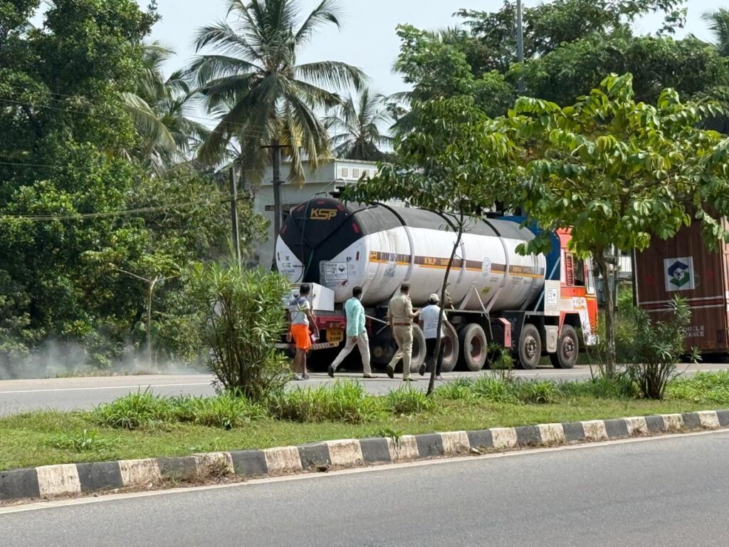 ಕಾರವಾರದಿಂದ ಕೊಚ್ಚಿಗೆ  ಹೈಡ್ರಾಲಿಕ್‌ ಆಸಿಡ್‌ ಕೊಂಡೊಯ್ಯುವ ಟ್ಯಾಂಕರಿನಲ್ಲಿ ಘಟನೆ ನಡೆದಿದೆ.