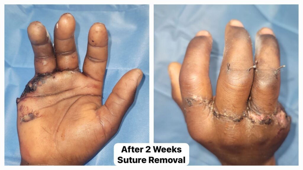 ಕಣಚೂರು ವೈದ್ಯಕೀಯ ಕಾಲೇಜು ಆಸ್ಪತ್ರೆಯ ಅರ್ಥೋಪೆಡಿಕ್ ವಿಭಾಗದ ಪ್ರಾಧ್ಯಾಪಕ ಹಾಗೂ ಘಟಕ ಮುಖ್ಯಸ್ಥ ಡಾ. ಜಲಾಲುದ್ದೀನ್ ಎಂ.ವಿ. ಅವರ ಮಾರ್ಗದರ್ಶನದಲ್ಲಿ ಡಾ. ನಿಖಿಲ್ ಜಯಶೀಲನ್, ಡಾ. ಶ್ರವಣ್, ಡಾ. ಅಶ್ವಿನ್, ಡಾ. ಅಥುಲ್ ಮತ್ತು ವಿನಾಯಕ ಅವರ ನೇತೃತ್ವದಲ್ಲಿ ಬಲಗೈ ಮಧ್ಯ ಮತ್ತು ಉಂಗುರ ಬೆರಳುಗಳನ್ನು ಮರುಸ್ಥಾಪಿಸುವಲ್ಲಿ ತಂಡ ಯಶಸ್ವಿಯಾಗಿದೆ. ಶಸ್ತ್ರಚಿಕಿತ್ಸೆಯ ಎಂಟು ದಿನಗಳ ನಂತರ ರೋಗಿಯನ್ನು ಆಸ್ಪತ್ರೆಯಿಂದ ಬಿಡುಗಡೆ ಮಾಡಲಾಗಿದೆ.