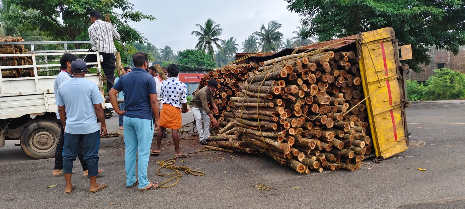 ಉಳ್ಳಾಲಬೈಲ್:‌ ಕಟ್ಟಿಗೆ ಸಾಗಾಟದ ಲಾರಿ ಪಲ್ಟಿ