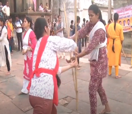 ಗದಗ, ನ.04; ರಾಜ್ಯದಲ್ಲಿ ಮೊದಲ ಬಾರಿಗೆ ಯುವತಿಯರು ಮತ್ತು ಮಹಿಳೆಯರಿಗಾಗಿ ನಗರದ ತ್ರೀಕೂಟೇಶ್ವರ ದೇವಸ್ಥಾನ ಆವರಣದಲ್ಲಿ ಲಾಠಿ ಶೌರ್ಯ ತರಬೇತಿ ಆಯೋಜಿಸಲಾಗಿತ್ತು.