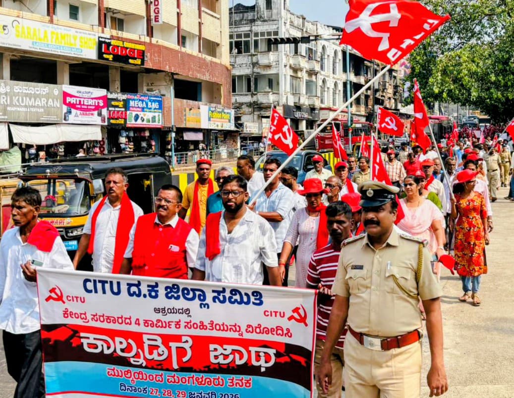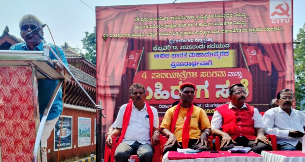ಕಾರ್ಮಿಕ ಸಂಹಿತೆಗಳ ವಿರುದ್ಧ ಜನಜಾಗೃತಿ ಮೂಡಿಸುವ ಸಲುವಾಗಿ ಕಳೆದ 4 ದಿನಗಳಿಂದ ದ.ಕ.ಜಿಲ್ಲೆಯಾದ್ಯಂತ ಸಂಚರಿಸಿದ ಪಾದಯಾತ್ರೆಗಳು ಇಂದು ಮಂಗಳೂರಿನ ಹೃದಯಭಾಗದಲ್ಲಿ ಸಮಾಪನಗೊಂಡಿದ್ದು,ಅದರ ಭಾಗವಾಗಿ ನಡೆದ ಬಹಿರಂಗ ಸಭೆಯನ್ನು ಉದ್ದೇಶಿಸಿ ಮಾತನಾಡುತ್ತಾ ಅವರು,ಈ ಮಾತುಗಳನ್ನು ಹೇಳಿದರು.
