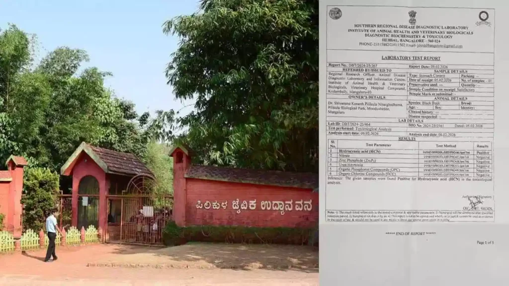 ವಿಷಕಾರಿ ರಾಸಾಯನಿಕ ಅಂಶ– 2026ರ ಫೆ.5ರಂದು ಉದ್ಯಾನವನದಲ್ಲಿ ಜಿಂಕೆಯೊಂದು ಮೃತಪಟ್ಟಿತ್ತು. ಅದರ ಮರಣೋತ್ತರ ಪರೀಕ್ಷೆ ನಡೆಸಿ ಹೊಟ್ಟೆಯಲ್ಲಿದ್ದ ಆಹಾರ ಮತ್ತು ಮಾಂಸದ ಮಾದರಿಯನ್ನು ಬೆಂಗಳೂರಿನ ಹೆಬ್ಬಾಳದಲ್ಲಿರುವ ಪಶು ಆರೋಗ್ಯ ಮತ್ತು ಜೈವಿಕ ಸಂಸ್ಥೆಯ ಪ್ರಯೋಗಾಲಯಕ್ಕೆ ಕಳುಹಿಸಲಾಗಿತ್ತು. ಪರೀಕ್ಷಾ ವರದಿ ಹಿರಿಯ ಅಧಿಕಾರಿಗಳ ಕೈಸೇರಿದ್ದು ಪ್ರಾಣಿಯ ದೇಹದಲ್ಲಿ ಹೈಡೋ ಸೈನೇಡ್ ಮತ್ತು ನೈಟ್ರೇಟ್ ಎಂಬ ವಿಷಕಾರಿ ರಾಸಾಯನಿಕ ಅಂಶಗಳಿರುವುದು ಪತ್ತೆಯಾಗಿದೆ. ಪ್ರಾಣಿಗಳ ಸರಣಿ ಸಾವಿಗೆ ಇದು ಕೂಡ ಕಾರಣ ಎನ್ನಲಾಗುತ್ತಿದೆ.