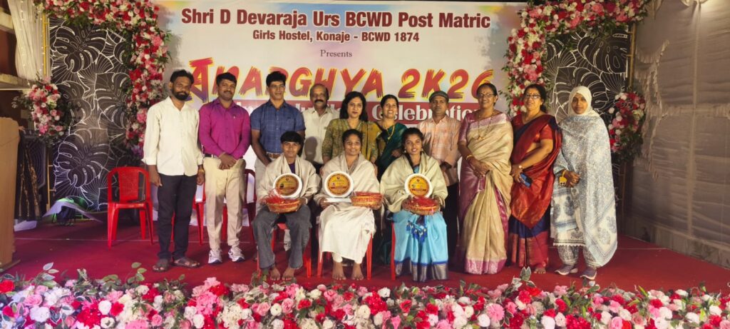 ಕೊಣಾಜೆ;ಹಿಂದುಳಿದ ವರ್ಗಳ ಕಲ್ಯಾಣ ಇಲಾಖೆಯ ವತಿಯಿಂದ ಡಿ.ದೇವರಾಜ ಅರಸು ಮೆಟ್ರಿಕ್ ನಂತರದ ಸ್ನಾತಕೋತ್ತರ ವಿದ್ಯಾರ್ಥಿ ನಿಲಯದ ರಜತ ಸಂಭ್ರಮದ ಹಾಸ್ಟೆಲ್ ಡೇ ಅನರ್ಘ್ಯ-2026 ಕಾರ್ಯಕ್ರಮ ವಿಜೃಂಭಣೆಯಿoದ ನಡೆಯಿತು.